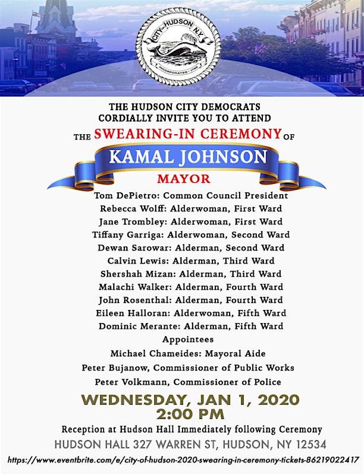 The Swearing In Ceremony of the 2020 City of Hudson Elected Officials at Hudson Hall is broadcast live on the radio.